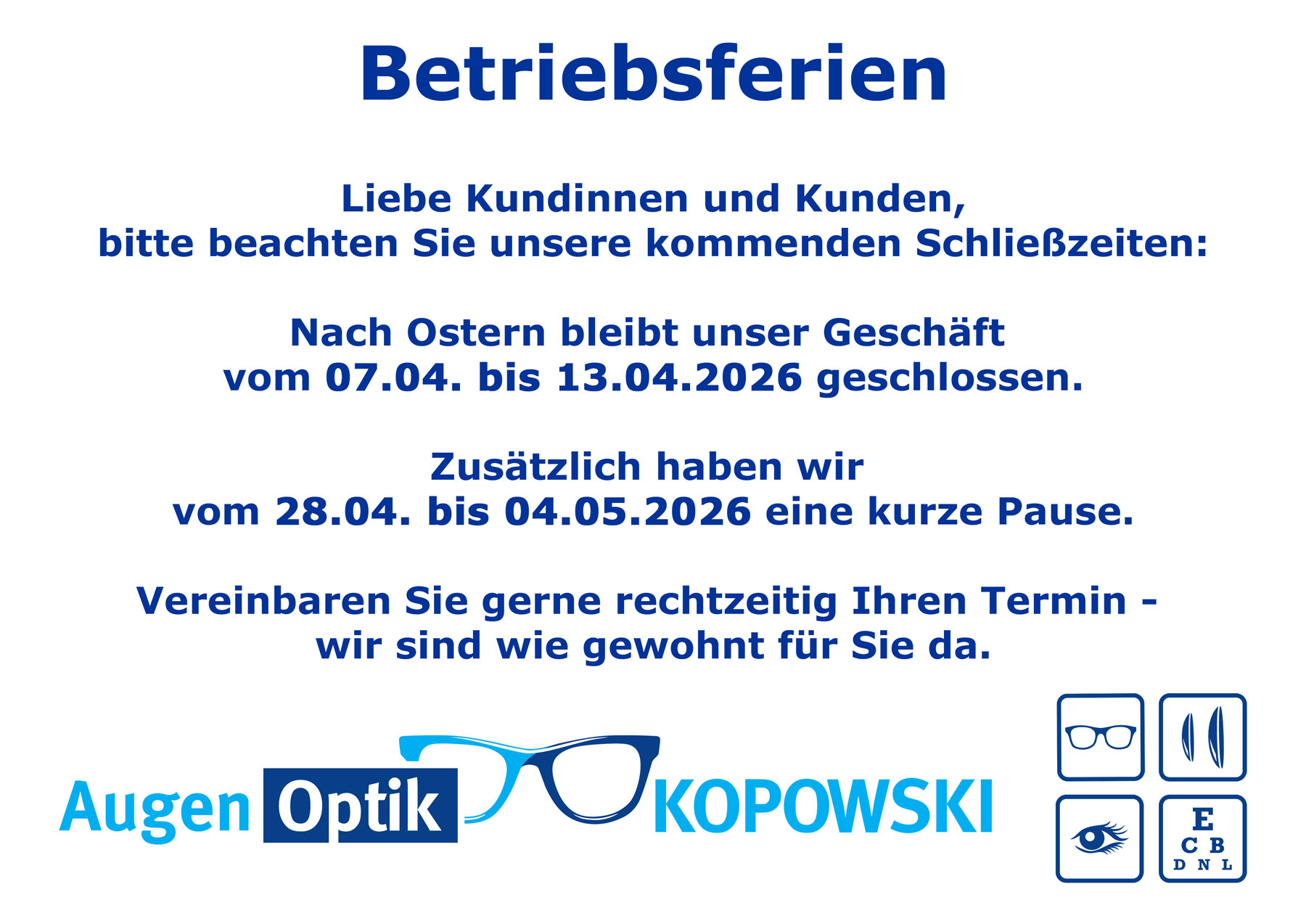 Die Bestimmung Ihrer Sehstärke erfolgt nur nach Terminvereinbarung.